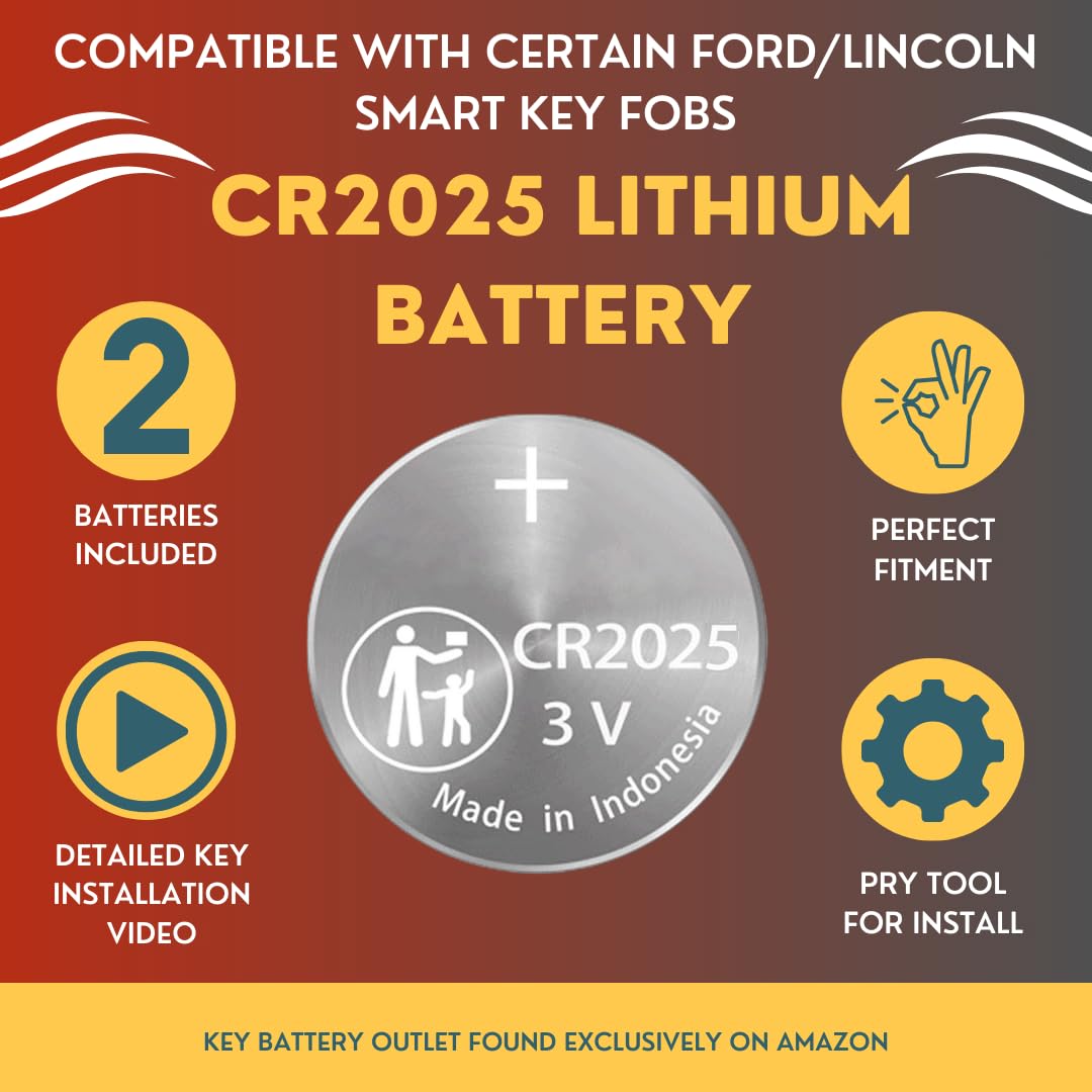 • KEY FOB BATTERY INSTALL - This kit includes [qty 2] CR2025 2025 coin battery and [qty 1] pry tool for effortless installation for Ford key fobs