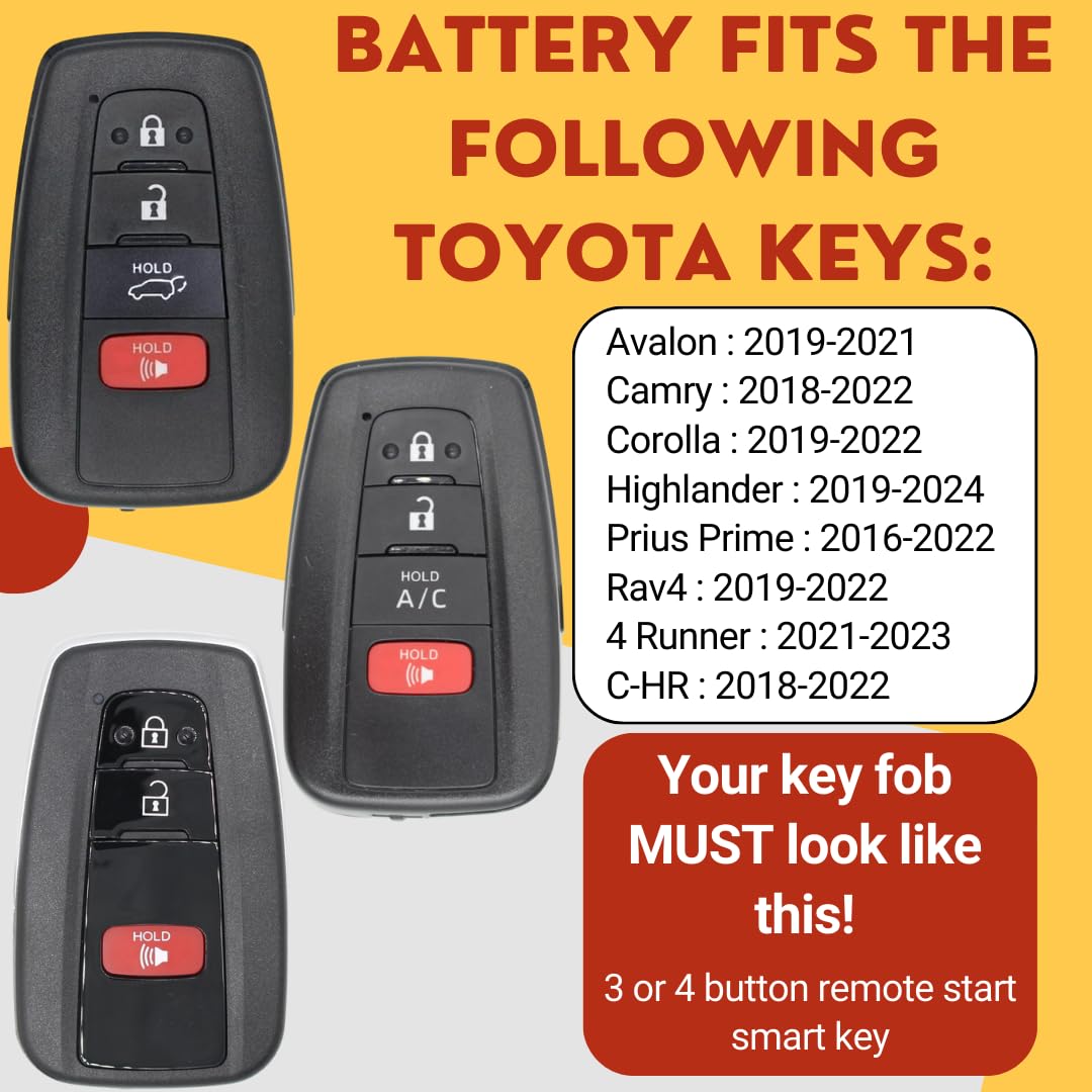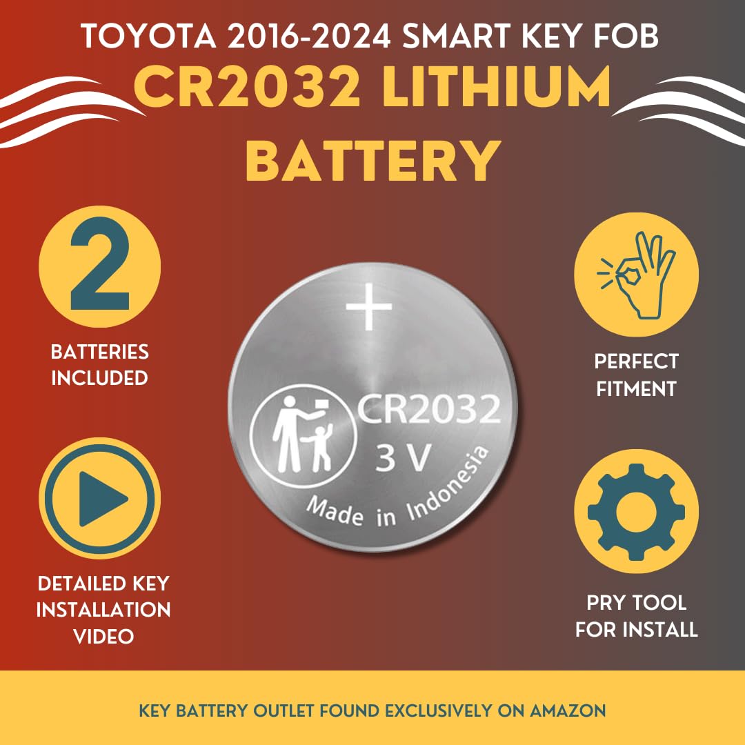 - KEY FOB BATTERY INSTALL - This kit includes [qty 2] CR2032 2032 coin battery and [qty 1] screwdriver for effortless installation for Toyota key fobs